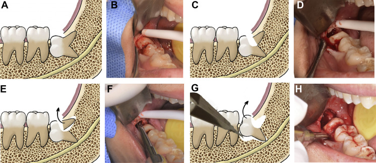 Dental Impaction Surgery an extraction your dentist or oral surgeon makes an incision in your gums and removes any bone that blocks access to the impacted tooth root. After removing the tooth, the dentist or oral surgeon typically closes the wound with stitches and packs the empty space (socket) with gauze.